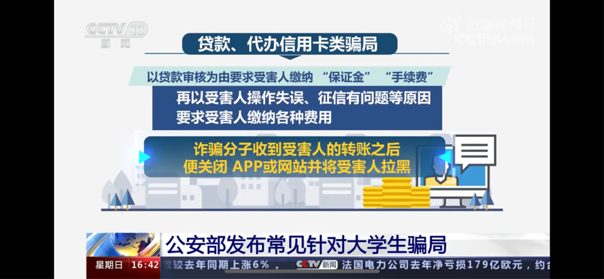 九、注销“校园贷”诈骗手法揭秘“注销不良记录”+指导贷款。凡是声称你有“校园贷”记录需要注销,否则会影响征信的,都是诈骗,切勿转账汇款!