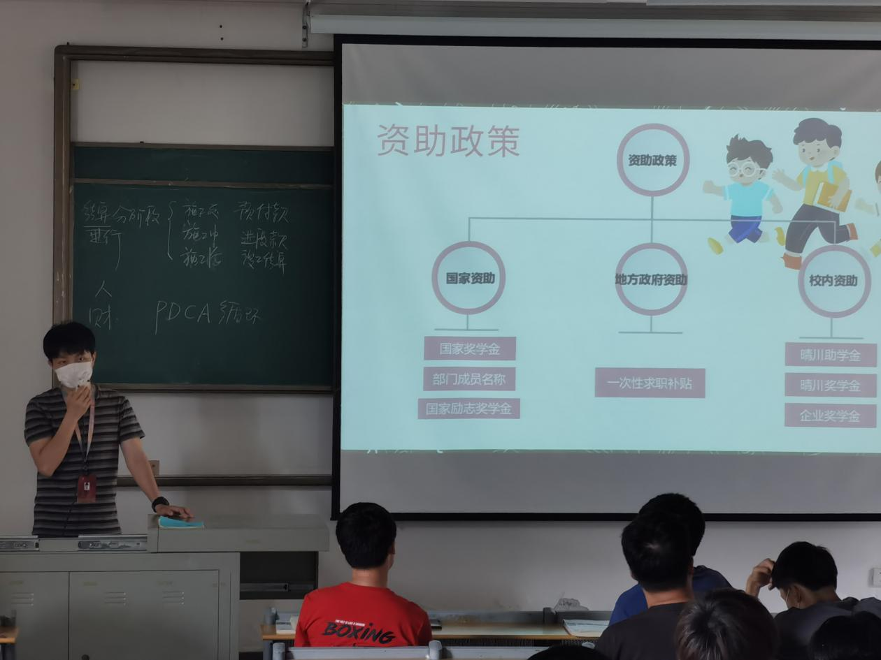 接着韩老师为大家详细解读了国家政府以及晴川学院本专科学生资助政策,许多外校升本校的同学听完连连点头。韩老师鼓励大家期末认真复习,凭自己的本事考出好成绩来年争夺奖学金,给自己和家人带来荣誉,也为他们减轻经济上的负担。