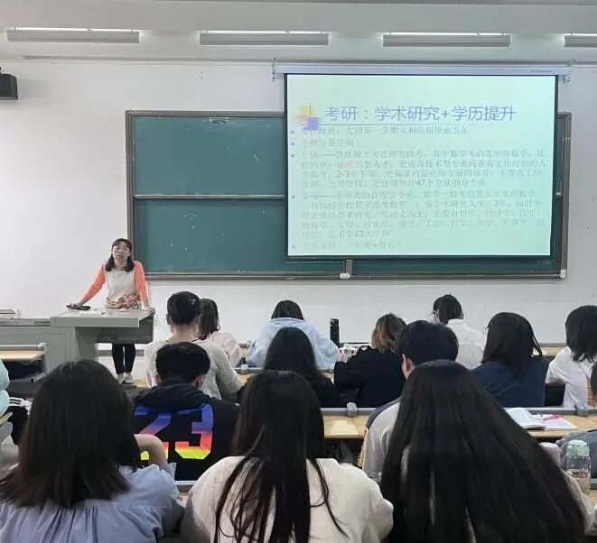 会议最后,李老师以提问的方式让同学们进行思考,“毕业生面临的抉择无非这四种:考研、考公、工作、出国留学,无论是哪种选择,都希望大家能做好准备。”她提醒大家时间不等人,早点进行职业生涯规划,定好目标,才会让未来更有方向,这样才有更多的时间和精力去实现自己的目标。