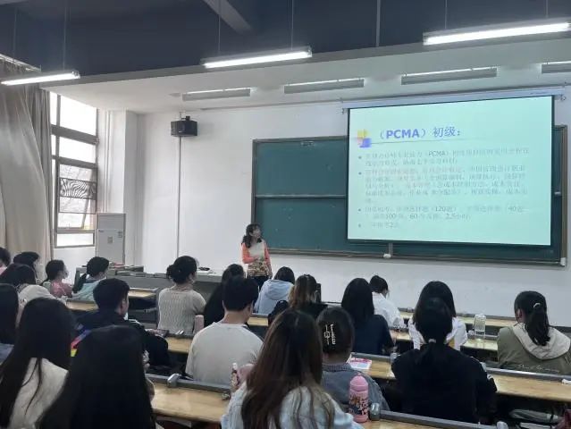 李散绵老师首先以自己的职业经历和学习经验为开场,阐述了她本人在职场的所见所想以及各种考证的经验。本次参加讲座的学生以会计学专业的为主,“不忘初心、牢记使命,仰望星空、脚踏实地。”这两句话是李老师对所有学生的期待与祝福,随后李老师为大家详细介绍了中国注册管理会计师(PCMA)的职业能力框架、考试时间与内容以及其职业能力分类、让同学们对所学的专业有了更深的认知。李老师告诉大家,如果想要成为一名会计师,就要追求更高的道德素质,并对大家提出以下期许“希望大家争做具有国际视野、开放包容、合作共赢,懂得中国国情的合格管理会计师!”