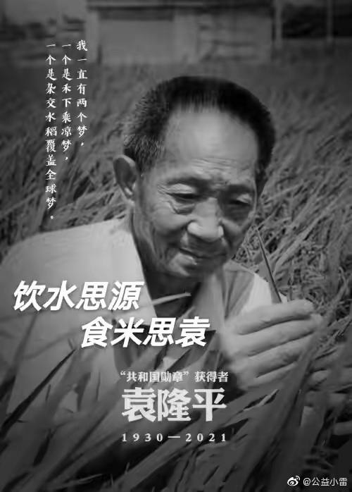 你曾说过你有两个梦想,一个是禾下乘凉梦,一个是杂交水稻覆盖全国梦,你把一生都写进田里,你把成就都刻在大地上,稻香绵延,一路走好。