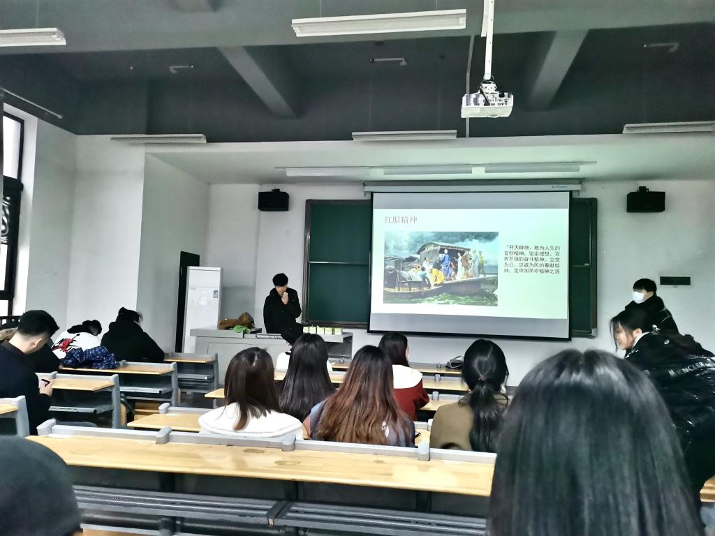 其中,对于我党的“红船精神”进行了重点讲解,红船精神作为红色革命精神之一,体现的是老一辈共产党人的开天辟地、敢为人先的首创精神,坚定理想、百折不挠的奋斗精神,立党为公、忠诚为民的奉献精神,“红船精神”更是中国革命精神之源。韩东老师一番讲解之后,同学们都感悟颇深,深深被红色革命精神影响。