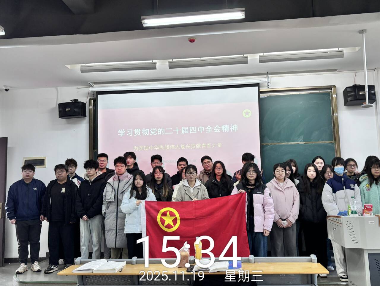 为深入学习贯彻党的二十届四中全会精神,引导青年学子将个人理想融入国家发展大局,2025年11 月 19 日,会计 2405 团支部在教1-409以 “学习贯彻党的二十届四中全会精神,为实现中华民族伟大复兴贡献青春力量” 为主题,开展了一场内容丰富、意义深远的团日活动。